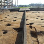 現在、寒川清水は四方に石垣が組まれ、西側には降り口の階段がありますが、かつては石垣がなく現在とは大きく景観が異なっていました。大正時代から昭和時代初期に撮影されたと思われる『石田村風景絵葉書』には方形の掘り込みのみが見られ、中は植物が茂っているように見えます。では、いつ現在のような姿になったのでしょうか。