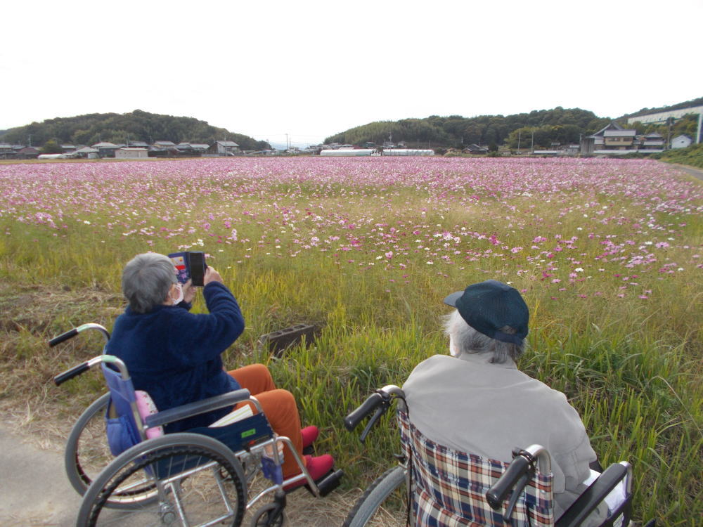 鮮やかなピンク色や白色のコスモスが一面に咲き誇り、花を眺めながら散歩をしたり、写真を撮影したりと、皆様それぞれに穏やかな時間を楽しまれていました。