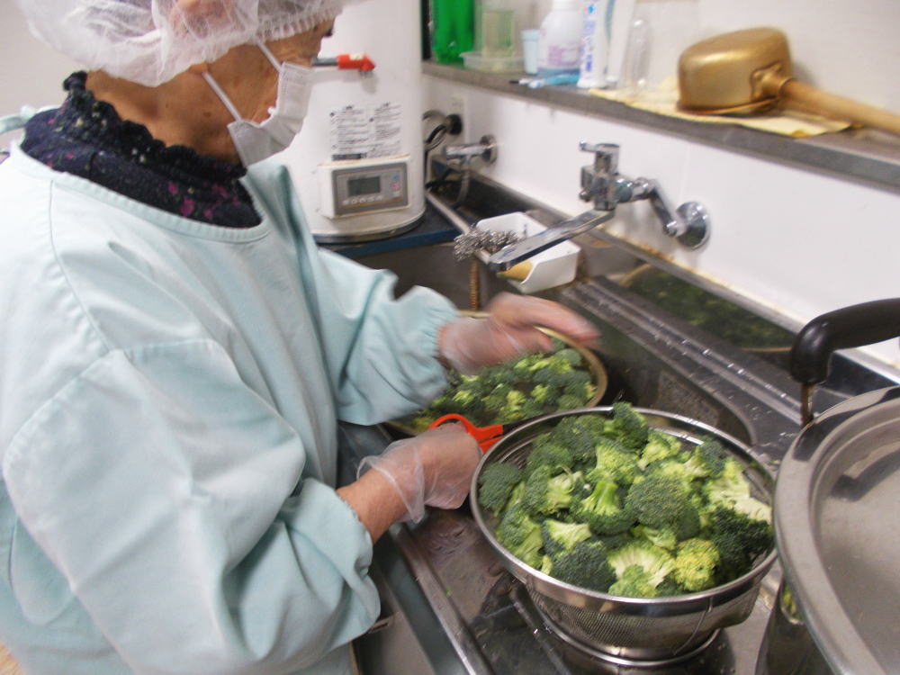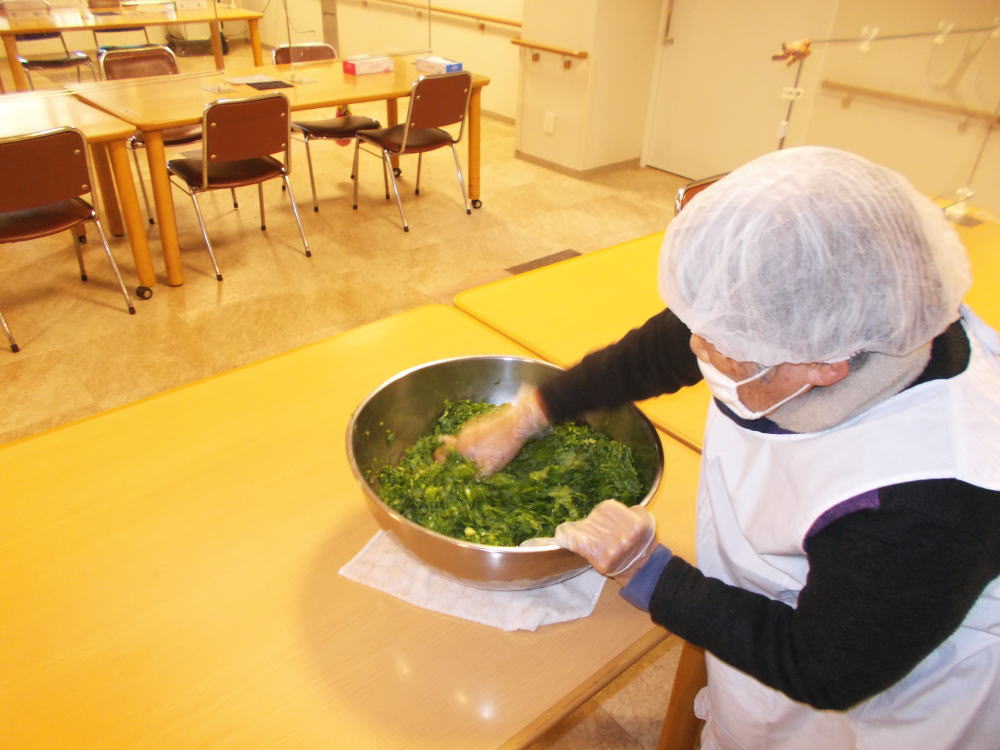 さざんか荘の養護老人ホームでは、不定期に利用者の皆様と一緒に、旬の食材を使った料理づくりを行っています。